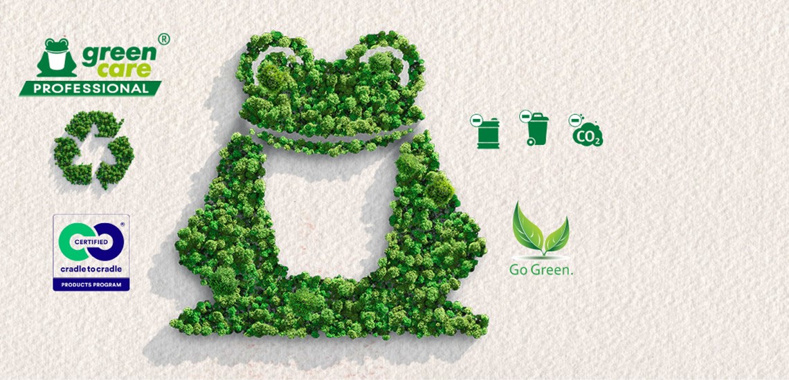 Sûr, Efficace, Circulaire. Green Care Professional c’est la promesse de nettoyants de qualité conçus en harmonie avec la nature. Pour nous, les résultats de lavage sont aussi importants que l’impact des nettoyants sur les hommes, la biodiversité et l’environnement. C’est sur la base de ce postulat que nous avons développé notre approche « circulaire ». Les matériaux utilisés dans la production de notre assortiment certifié Cradle to Cradle® peuvent être renvoyés dans les cycles techniques et biologiques. Nous en avons tiré notre slogan « Un avenir circulaire ».